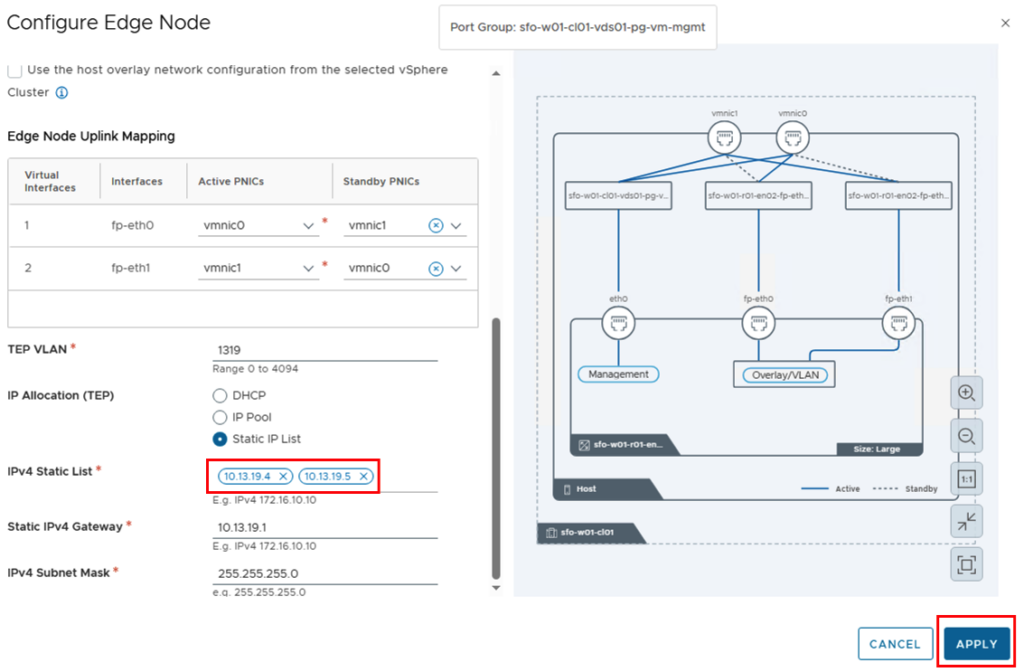 - Port Group: sfo-w01-cl01-vds01-pg-vm-mgmt (mgmt VLAN)