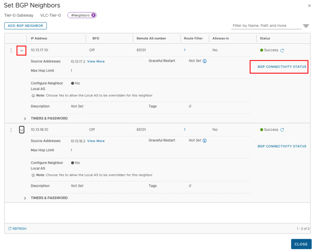 In the new window you can expand the BGP Neighbors and find the “BGP CONNECTIVITY STATUS” on the right side.