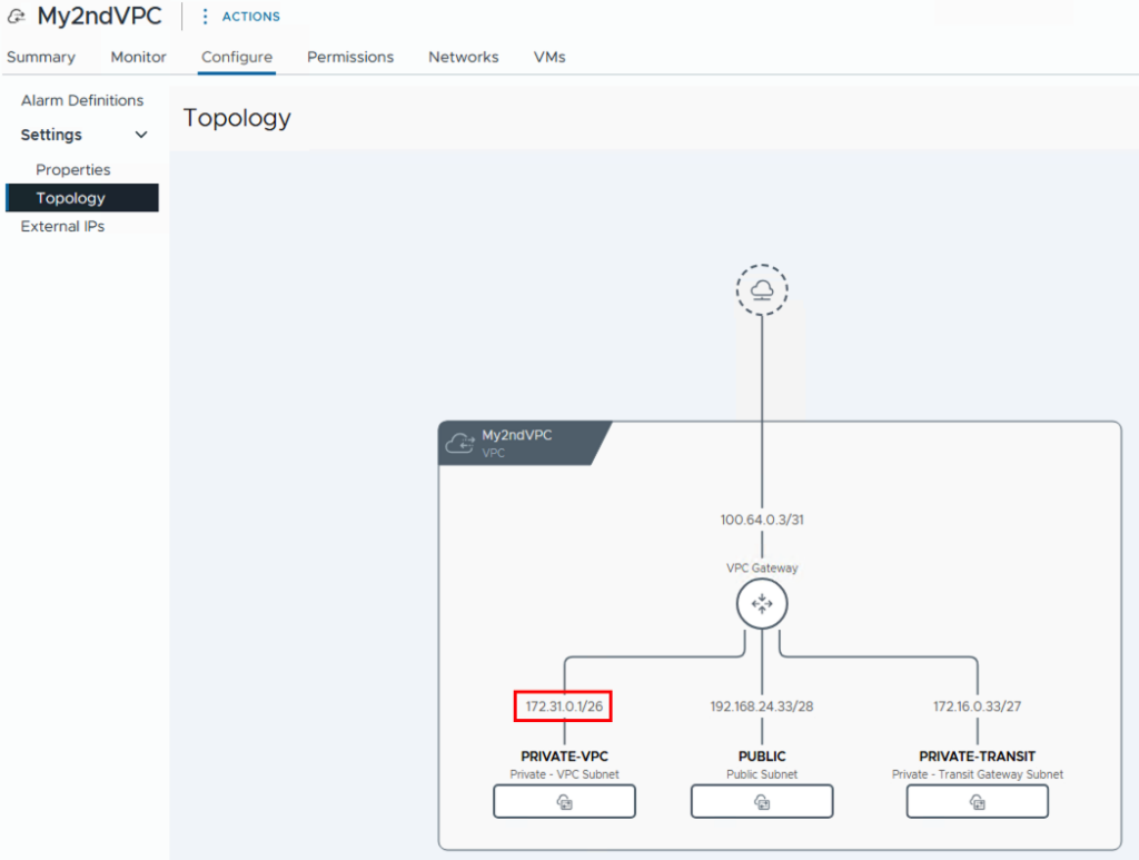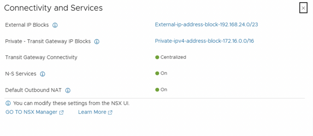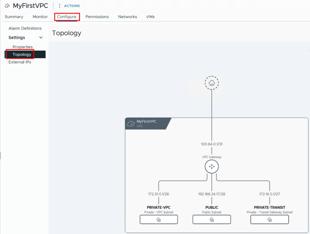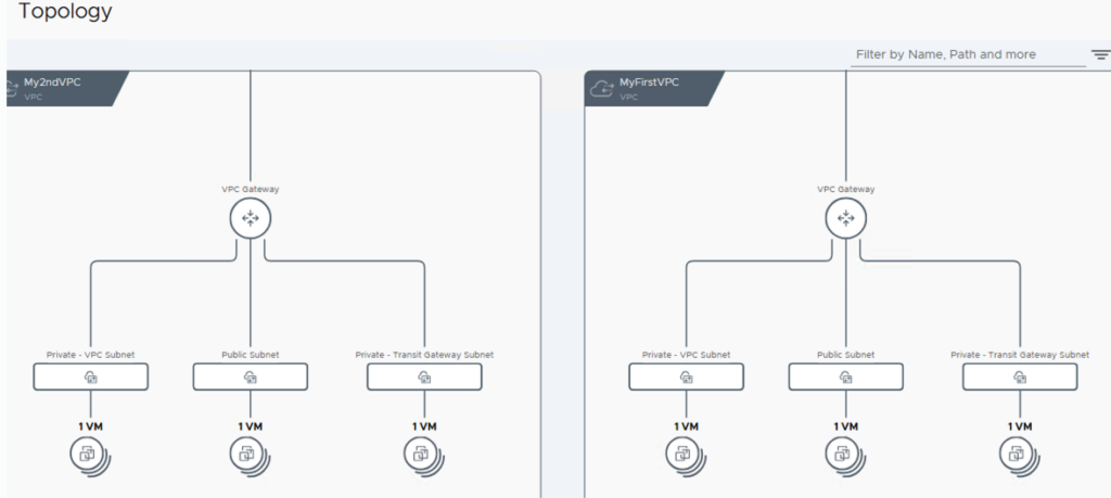 For the native VPCs (created from the vCenter), the Transit Gateway is used instead of the T1 Gateway.