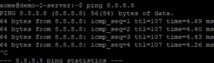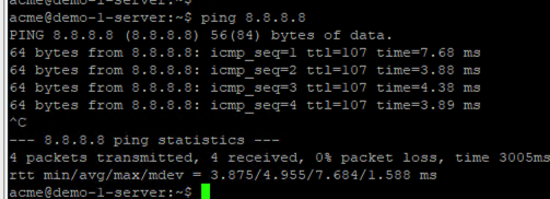 Test 3: Ping from demo-1-server and from demo-2-server to an external address (8.8.8.8)