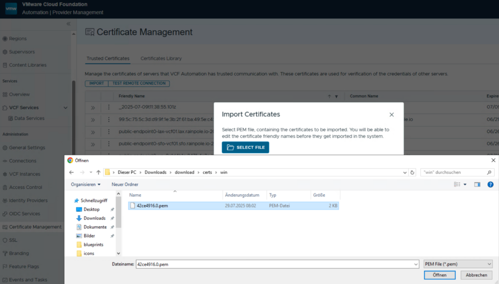 Step 2: Introduce the Certificate to VCF Automation