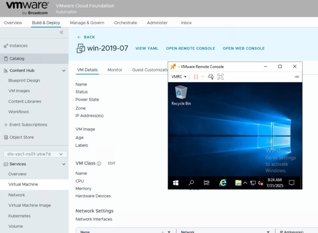 VCF Automation 9 – Console Access for VMs