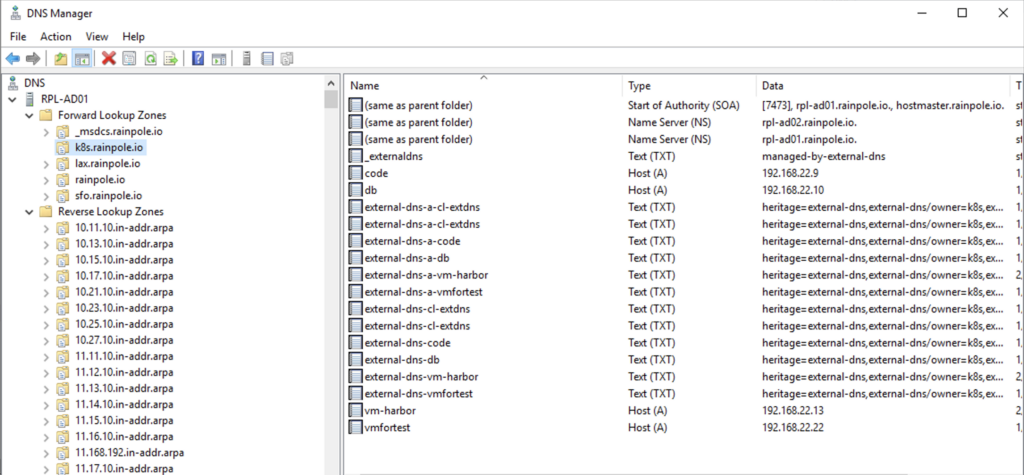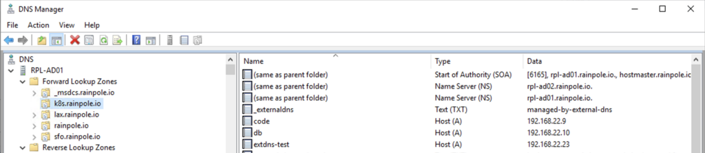 There should now be a corresponding DNS entry in Microsoft DNS (extdns-test)