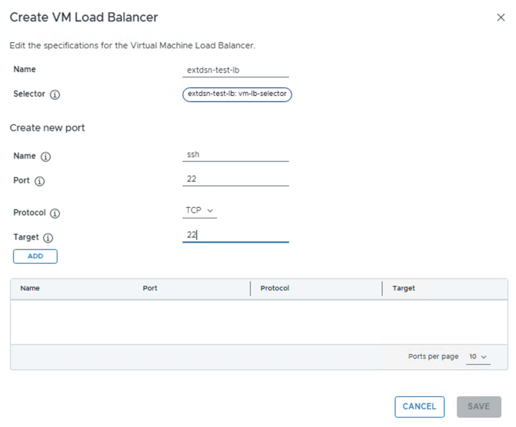 Define a Name for the Load Balancer and create a new port (i choosed ssh). Click ADD and SAVE