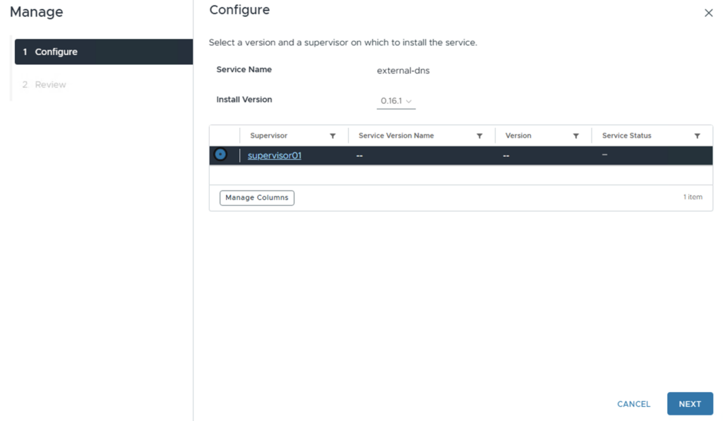 Follow the description on this web page, download the right ExternalDNS Supervisor Service and click