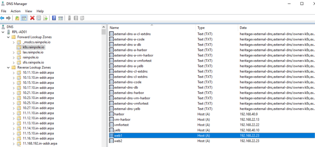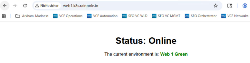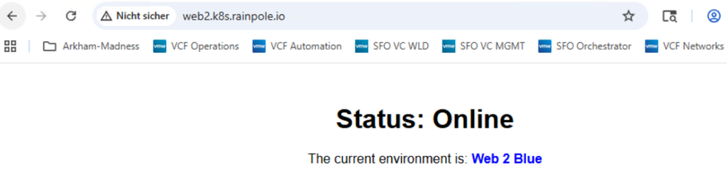 If everything has been configured correctly, you should be able to connect to web1.k8s.rainpole.io and web2.k8s.rainpole.io